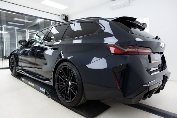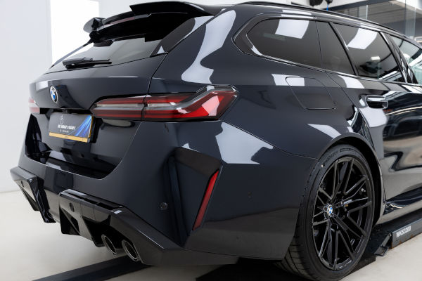 De nieuwe M5 Touring is momenteel een bijzonder geliefd model – en terecht. De combinatie van kracht, comfort en klasse, maakt hem een populaire keuze onder liefhebbers. Bij een auto in deze klasse – die vaak vele snelwegkilometers maakt – is solide bescherming onmisbaar. Het is dan ook geen verrassing dat we dit model regelmatig voorbij in uiteenlopende uitvoeringen voorbij zien komen, van mat tot hoogglans. Dit specifieke exemplaar kwam direct na aflevering bij de dealer bij ons binnen voor de volgende behandeling: